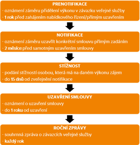 Uzavření smlouvy s dopravcem o výkonu v závazku veřejné služby je časově poměrně náročné: obecně platí, že je nutné záležitost začít řešit alespoň 36 měsíců předtím, než by měl být zahájen provoz na dané lince, a to kvůli legislativním požadavkům a dostatečnému množství času, aby dopravce zvládl provoz připravit (zejména zajistit potřebné vlakové jednotky a nastavit procesy pro provoz potřebné – prodej lístků, reklamace, zákaznické centrum, prodejní místa…).