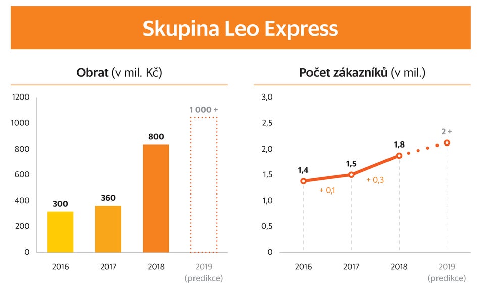 Pro rok 2019 plánuje Leo Express tržby na úrovni 1 miliardy korun a spuštění služeb v oblasti závazkové dopravy.